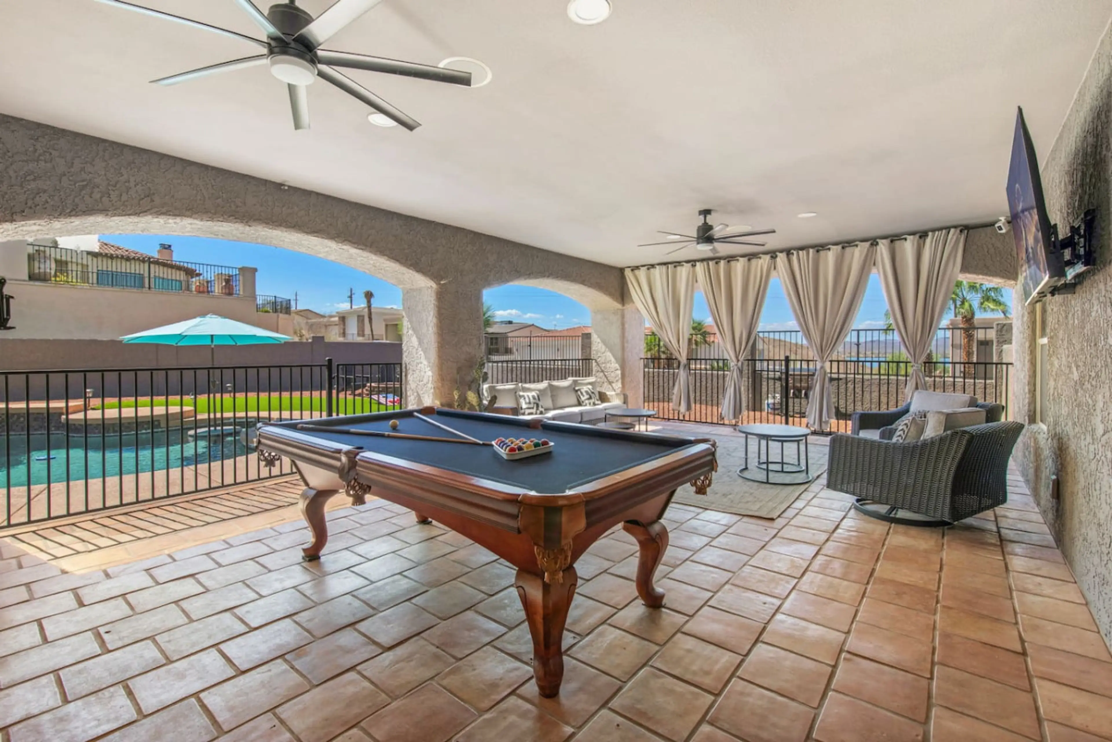 Dive into relaxation at this getaway featuring a sparkling pool, cozy firepit, and a covered patio with pool table perfect for laughter-filled evenings. Challenge your friends in the game room garage or kick back in the spacious indoor living areas designed for comfort and connection. Whether you’re...
